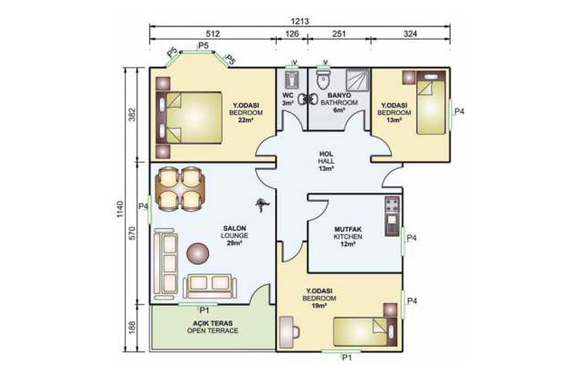 114 metrekare prefabrik ev