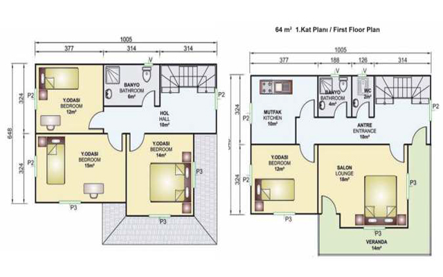 Not : Sipariş verilirken kapı ve pencere konumları ve ölçüleri mutlaka bildirilmelidir.