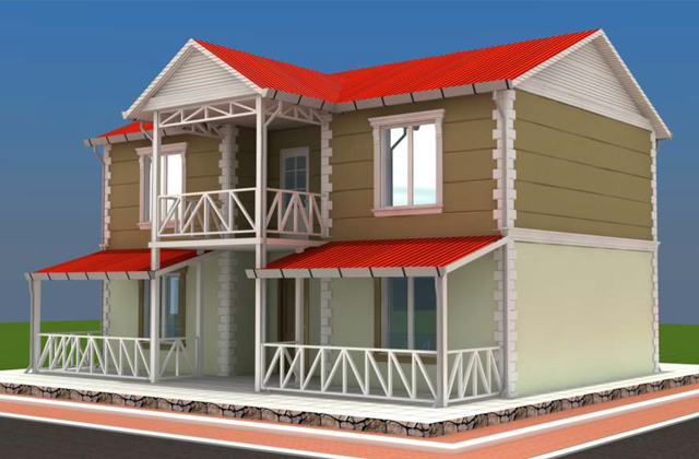 Dış ve iç paneller : Özel bükümlü paslanmaz galvaniz sacdan ve 8X1250X2500 mm ebatlarında çift taraflı çimentolu yonga levhadan (betopan) imal edilir. Isı yalıtımı için paneller arasında 84 mm 16 dansite polistiren sert köpük kullanılır. Dış panel kalınlığı 10 cm, iç panel kalınlığı 6-8-10 cm ve panel yüksekliği 250 cm’dir. olu duvar paneli, pencereli duvar paneli, vasistaslı duvar paneli ve kapılı duvar panelinden imal edilen binaların en ağır parçası (1 adet 125x250 cm dış kapılı panel için ) 114 kg dır.